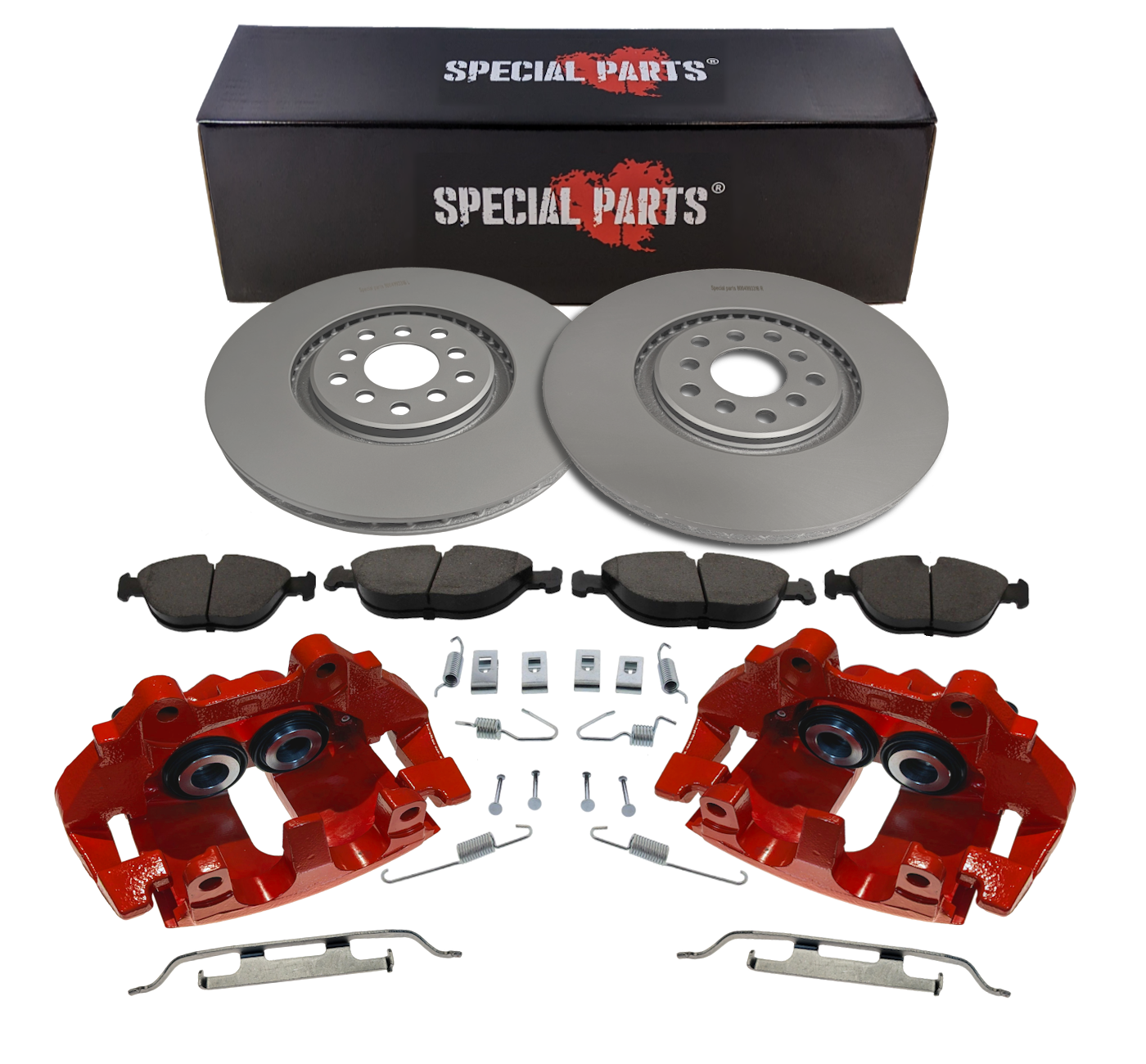 Dieser Bremsscheiben-Umbausatz von Special Parts entspricht dem Original, wurde aber auf Grund seiner Bauweise mit einem Doppellochkreis produziert und ermöglicht damit eine schnelle Umsetzung auf 5x112 und 5x100 an der Vorderachse (Ø 334 mm) eines VW Golf 4 R32, um Felgen mit einem Lochkreis von 5x112 und 5x100 zu fahren.